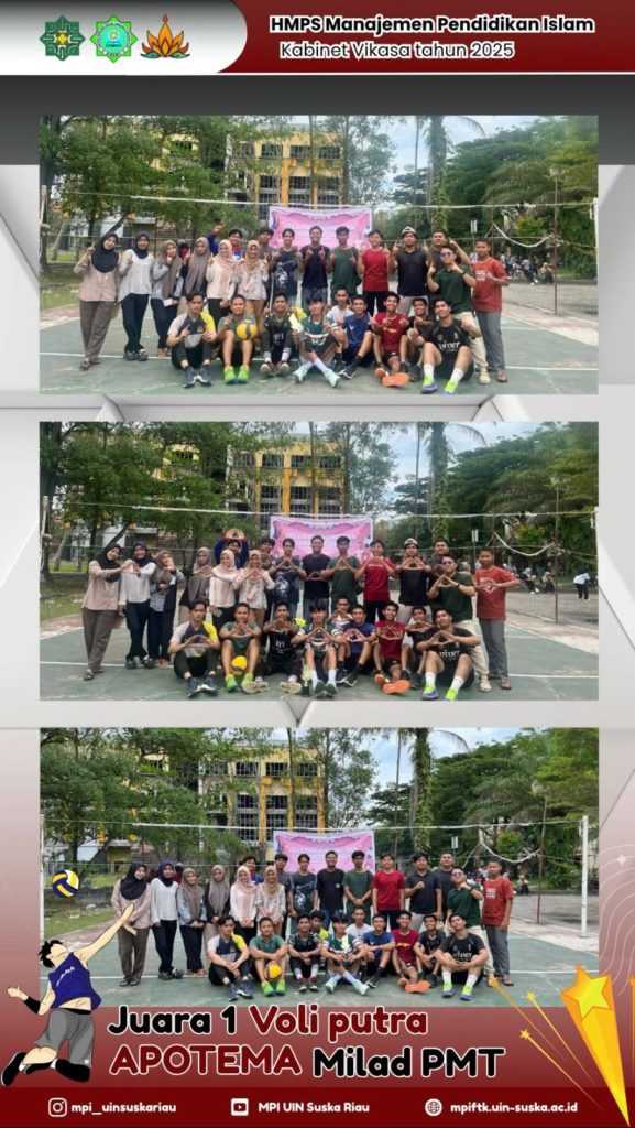 Tim voli putra program studi manajemen pendidikan islam meraih juara satu tingkat SE-Fakultas Tarbiyah Dan Keguruan dalam rangka acara Apotema,Milad PMT ke-24 yang di tajah dari program studi pendidikan Matematika